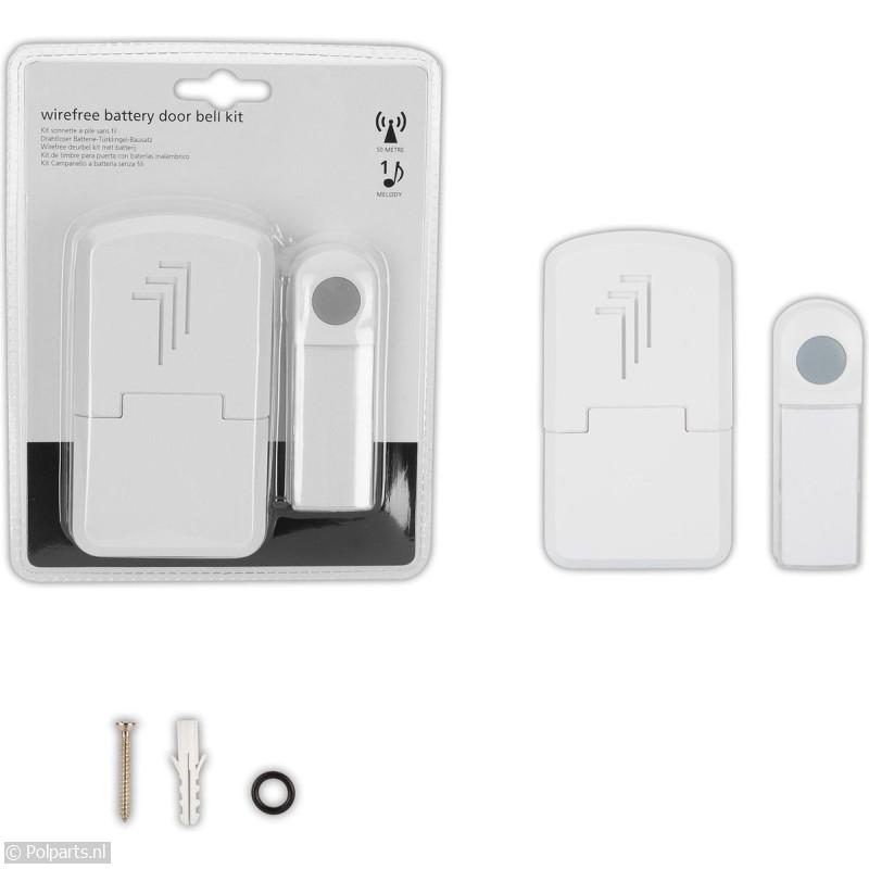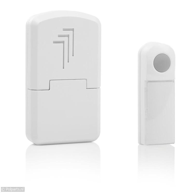 De beldrukker werkt op een A23 batterij (inclusief) De deurbel werkt op 3x AA batterijen (niet inbegrepen) De beldrukker is IP44 weerbestendig.