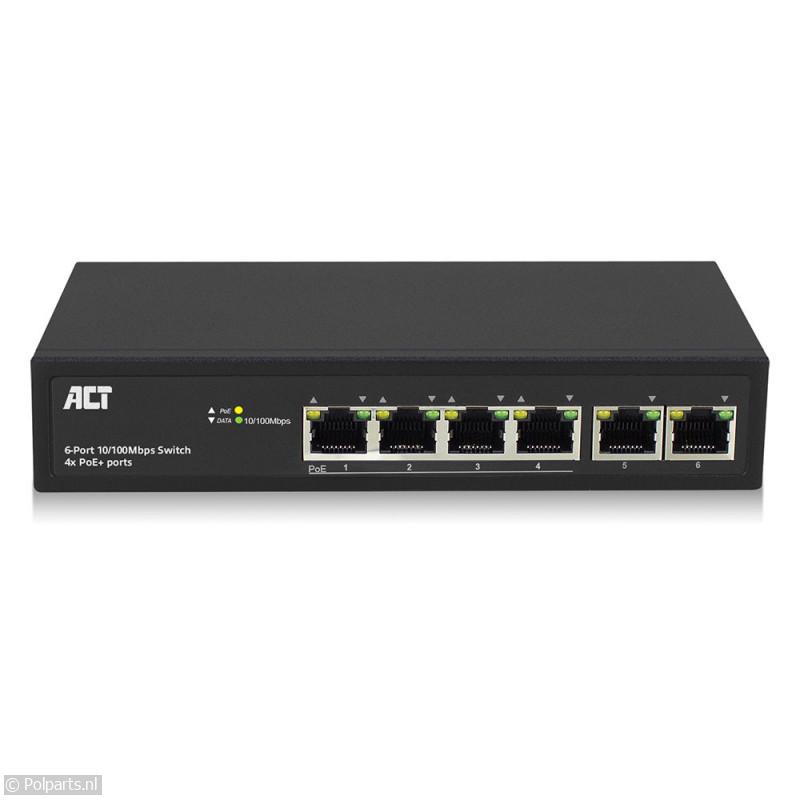 6-Poorts 10/100Mbps Switch 4x PoE+ Poorten - ACT - 74604344 - 8716065409239 - 74604344001 - AC4430 - 7.46.04.34-4