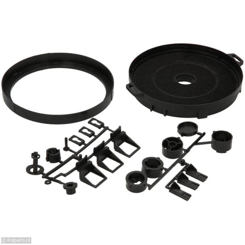 Koolstoffilter met diverse bevestigingshulpstukken voor de onderbouw afzuigkappen.